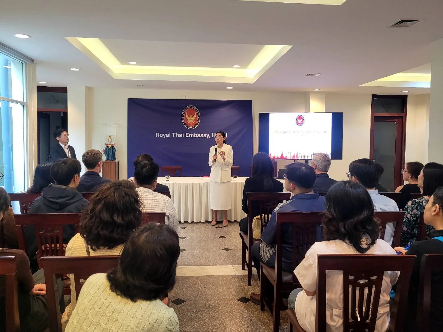 Moving from community-based development discussions at PanNature to academic exchanges at the university, students gradually expanded their perspective from local to regional levels. This learning journey continued with a visit to the Royal Thai Embassy in Hanoi, where students gained insight into how policy, dialogue, and diplomatic relations between Thailand and Vietnam work. It offered a clearer understanding of how development is not only driven at the community level but also through regional cooperation and ongoing dialogue between countries.